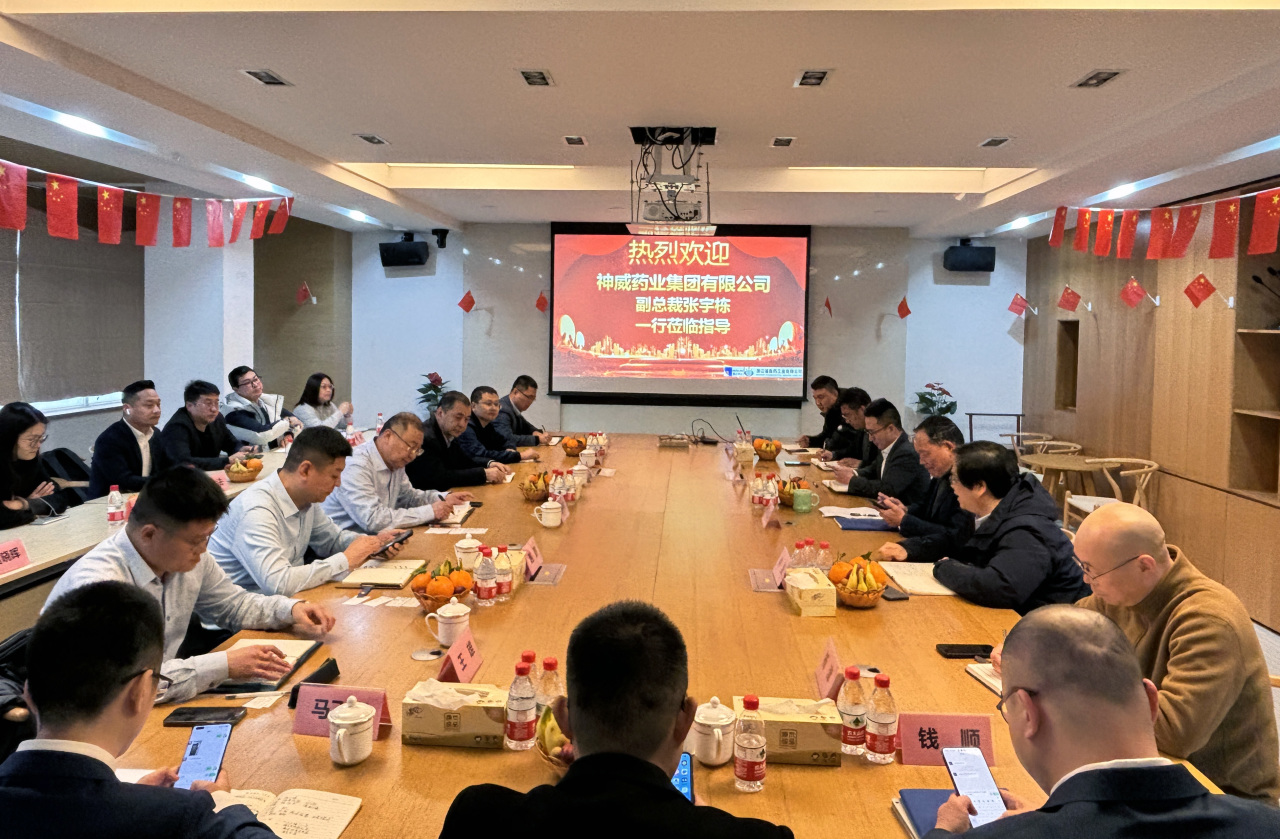 2月29日,神威藥業集團有限公司副總裁張宇棟率其招商、分銷、營銷等部門代表一行11人來到浙江省醫藥工業有限公司舉行了“全方位、多領域、工商深度融合項目”對接會。我司總經理斯元龍、常務副總經理鐘波等接待,雙方就項目合作進行了深度交流。